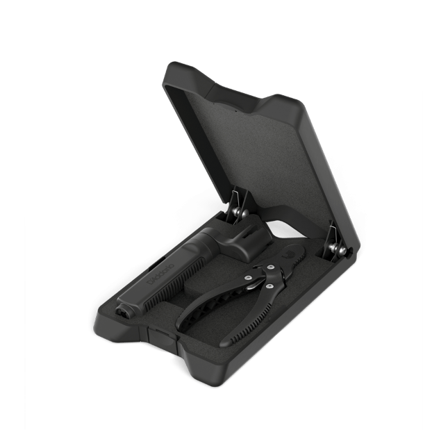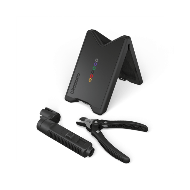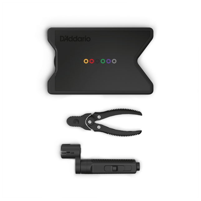 The D'Addario Tour-Grade String Change Kit promises professional string changes in any environment. The string winder utilizes a premium ball bearing socket to easily turn any tuning peg and features a collet design bridge pin puller that captures bridge pins as you remove them. The string cutter features long-lasting hardened blades and compound-action design to provide over seven times the cutting force of standard pliers, making it easy to get through even the thickest strings with ease. Both tools come in a durable, over-molded case, which doubles as a neck rest, so players, luthiers, and techs have everything they need to change strings like a pro.