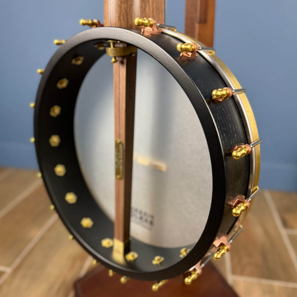 The Pisgah Woodchuck banjo is great sounding old time clawhammer banjo with just the right touch of sparkle and brightness. Features a rolled brass tone ring. Short scale - 25.5"