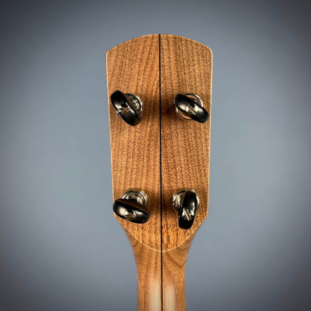 This Pisgah Woodchuck features the magnetic truss rod cover for easy access to the adjustable truss rod in the neck.  It also has the familiar frailing notch at the top of the tension hoop.  This offer the player full access to the frailing section of the banjo without any interference from the banjo.